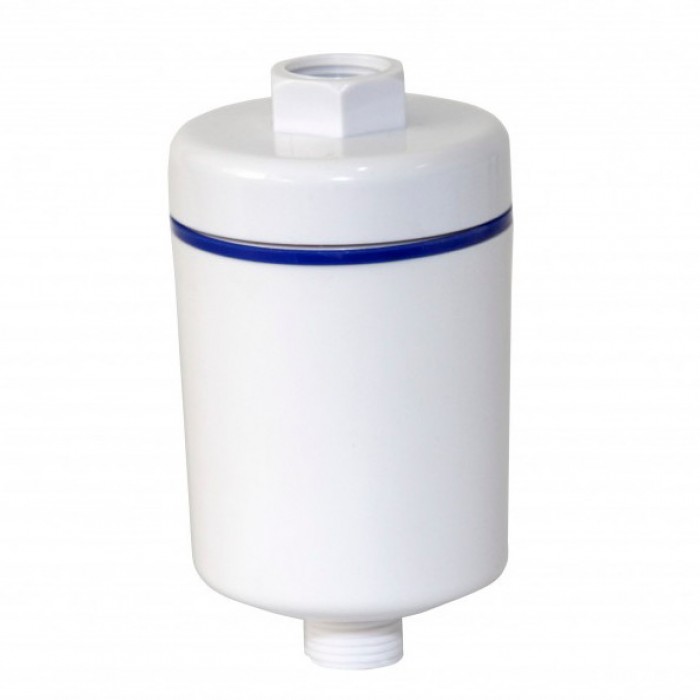Данный фильтр состоит из кокосового угля и продукта KDF. Фильтрующие компоненты KDF представляют собой высоко очищенные сплавы цинка и меди. Эти сплавы снижают содержание загрязнителей в воде путем окислительно-восстановительных химических реакций, идущих благодаря разности электрохимического потенциала между различными химически чистыми металлами. Активированный уголь удаляет органические загрязнения, удаляет из воды пестициды и гербициды, а KDF-55 обменивает свои электроны на электроны загрязняющих веществ и превращает их в безвредные компоненты, например хлор в хлорид. Обмен электронов в окислительно-восстановительном процессе создает электролитическое поле, которое большинство микроорганизмов не могут выдержать. Так же могут образовываться гидроксильные радикалы и перекиси, которые мешают микроорганизмам свободно функционировать. Обычно устанавливается возле крана и позволяет вовремя душа или других гигиенических процедур использовать абсолютно чистую воду.