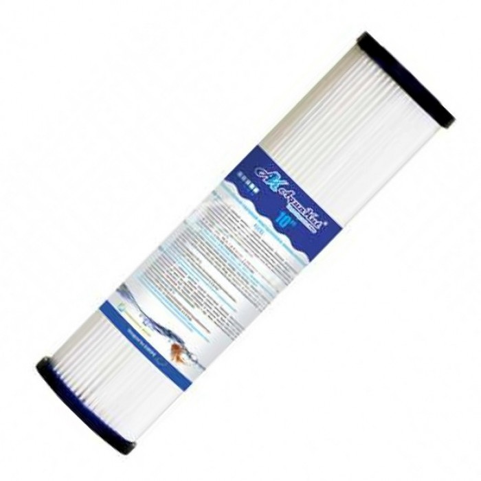 Данный фильтр изготовлен из полиэстера который сложен специальными методом форме гармошки, такая форма позволяет максимально увеличить площадь фильтрации воды. Для большей надежности сама гармошка проклеена в верхних частях целлюлозным клеем. Этот фильтр применяется для очистки холодной воды от посторонних примесей и взвешенных частиц таких как песок, ржавчина или ил. Обычно его устанавливают как в фильтр предварительной очистки перед остальными фильтрами для смягчения и доочистки воды. Плюс данного картриджа в том, что его можно промывать до 3 раз и использовать повторно, это значительно экономит затраты на очистку воды, при этом не ухудшая фильтрующие свойства.