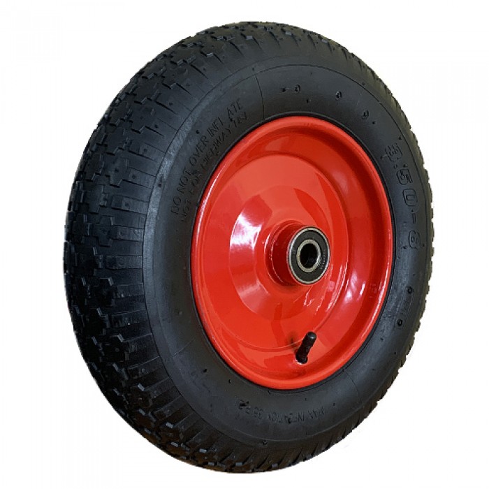 Колесо пневматическое предназначенное для садово строительных тачек и других средств для передвижения грузов. Колесо имеет стальной диск с установленными по обе стороны шариковыми подшипникам, таким образом Вы сможете легко установить на ось. На диске установленна бюджетная пневматическая покрышка с камерой, устанавливается на диск методом бортирования и при необходимости Вы с легкостью ее поменяете. Диск окрашен краской для увеличения срока эксплуатации. При правильных условиях использования колесо прослужит довольно долго, максимальная нагрузка 150 килограмм, максимальная скорость километров в час, а высота препятствия не выше 5% от общего диаметра колеса.