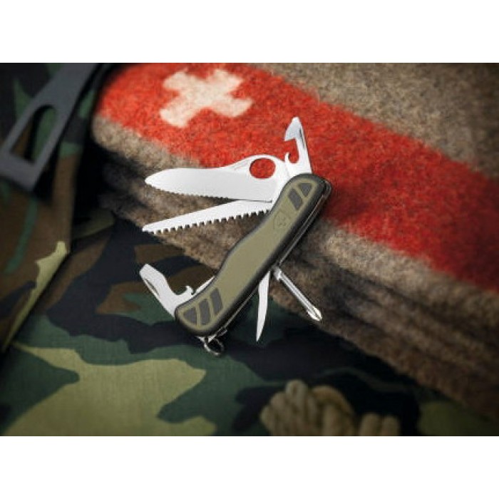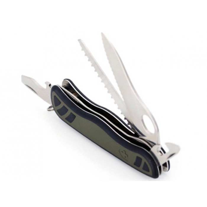 | Инструменты | Нож с серрейторной заточкой, Открывалка, Плоская отвертка, Консервный нож, Шило, Маленькая отвертка, Пила по дереву, Крестовая отвертка, Кольцо для подвеса |