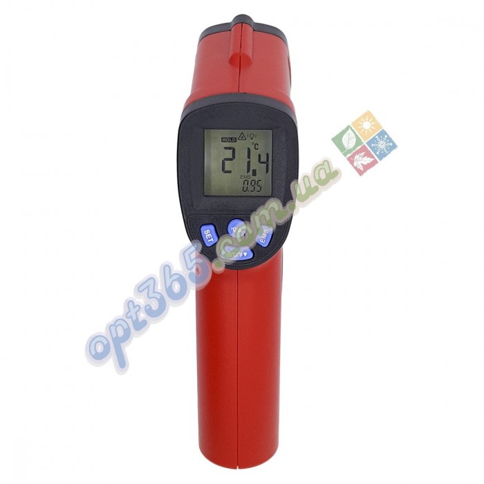 Электронный пирометр предназначен для измерения температуры без непосредственного контакта с объектом измерения, что позволяет измерять практически любые предметы и работать в труднодоступных местах, без опасений за свое здоровье и исправность прибора измерения. Принцип работы пирометра основан на измерении абсолютной амплитуды электромагнитного излучения от объекта в инфракрасной части спектра и преобразованием измеренного значения в температуру, и вывода показаний на экран для удобного их считывания. При такой сложной схеме многие считают что у них большая погрешность, но это не так при правильном использовании погрешность данного прибора составляет всего до 1 градуса Цельсия. Пирометр имеет лазерный целеуказатель что бы пользователь видел место куда направлен прибор. Работает пирометр от одной батарейки "Крона", учитывая что прибор автоматически выключается в период простоя ее хватает на очень долгое время. Дисплей пирометра имеет подсветку для удобной работы в темное время суток. Так же есть возможность корректировать погрешность в зависимости от типа измеряемого материала, таблица с нужными показателями прилагается к пирометру.