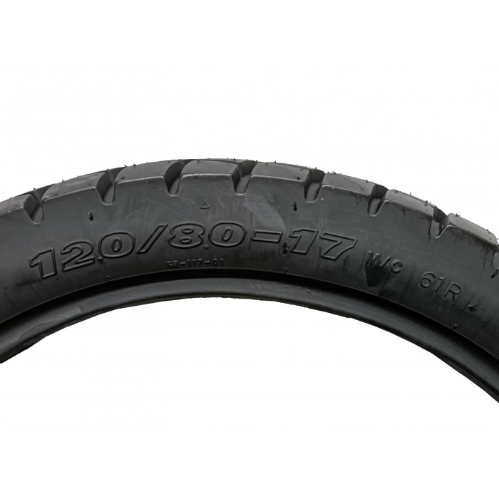 Покрышка для мотоцикла 120/80-17, Deli Tire SB-117, TL выпущена довольно популярным в Украине производителем резины для мототехники и велосипедов из Индонезии Deli Tire или старое название Swallow. Производитель представлен на рынке Украины уже более 15 лет и зарекомендовал себя в лучшем свете. Покрышка выполнена полностью в соответствие со стандартными размерами 120/80-17 и прекрасно заменит старую без каких либо нюансов. За все время работы у данного производителя практически отсутствует брак и поддерживается отличное качество литья. Так же и состав резины достаточно сбалансирован и объединяет в себе все необходимые качества: мягкость, отличное сцепление с разными поверхностями, износоустойчивость и долговечность. Покрышка представлена с протектором эндуро, он подходит для владельцев мотоциклов, которые ездят как по асфальтовым дорогам, так и по пересеченной местности. Благодаря специальной форме протектора, он создает минимальный для такого вида шум при езде по шоссе и отлично цепляется за не очень стабильные грунты, так же отлично отводит воду с пятна контакта. Это универсальный вариант для своего круга потребителей, если Вам нужна максимальная топливная эффективность или езда по бездорожью, Вам стоит выбрать другие типы протекторов.