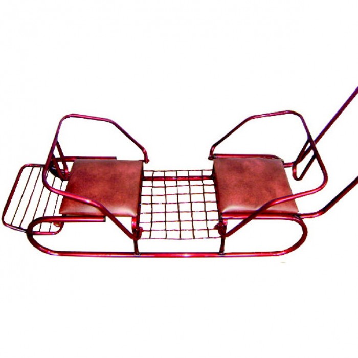 Данные санки предназначены для близнецов или двойняшек, они очень удобные так как благодаря перекидной спинке можно посадить детей либо друг за другом либо напротив друг друга. Сами санки изготовлены из высококачественного металлического профиля который выгнут специальным образом что позволяет ехать как вперед так и назад. Места для сидения утеплена поролоном и покрыто кож замом. Дополнительно можно приобрести два меховых чехла и обеспечить еще больший Комфорт Вашим малышам. Для удобного размещения под ноги установлены специальные сетки они выполняют сразу две функции, во-первых, через них обрушивается снег и ноги остаются сухими и, во-вторых, они являются удобной подставкой.