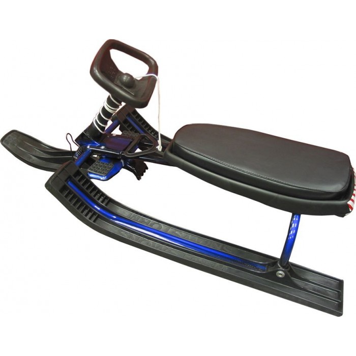 Снегокат предназначен для детей и подростков весом до 70 килограмм. Основной особенностью снегоката является то что он имеет руль, поэтому Вы легко можете выбирать направление движения. Во избежание сильных ударов на рулевой колонке установлен амортизатор который их гасит. Основная рама изготовлена из стали, пластиковые элементы изготовлены из высококачественного ПВХ пластика который остается эластичным даже при отрицательных температурах. На рулевой колонке установлен ножной тормоз для безопасной остановки. Сиденье имеет мягкую вставку из поролона обтянутую кожзаменителем.