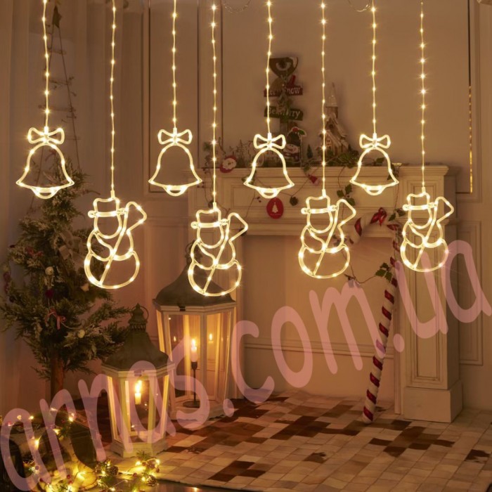Теги: Светодиодная гирлянда Снеговик и колокольчик, тепло белая 3х1 метр, GYRA-8516, General, Новогодние товары