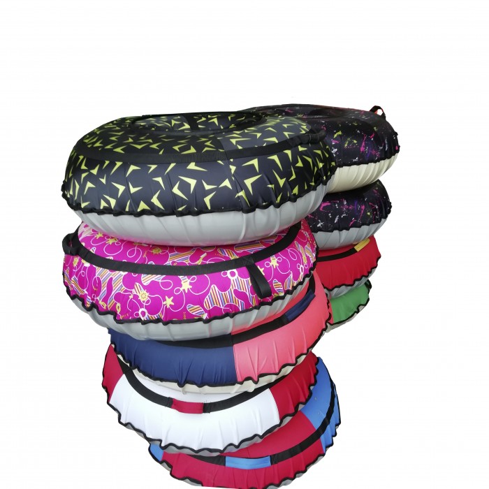 Основой тюбинга служит обычная автомобильная камера которую можно подкачать любым насосом. Тюбинг это так называемые надувные санки, но в отличие от них он намного комфортнее и безопаснее. Поскольку основой тюбинга служит надувная камера все ухабы и неровности на вашем маршруте она принимает на себя, а Вы только наслаждаетесь весёлым катанием. Для удобной фиксации по бокам расположены специальные большие ручки, которые удобно использовать даже в зимних перчатках. Также к нему прикреплен специальный трос для удобного поднятия в горку. Тюбинг это самая лучшая альтернатива санкам, более того на ней намного веселее и интереснее кататься. Верхняя часть тюбинга изготовлена из высококачественного ПВХ, которое остается эластичным даже при отрицательных температурах при этом он имеет минимальное сцепление со снегом что позволяет развивать оптимальные скорости спуска с горки.