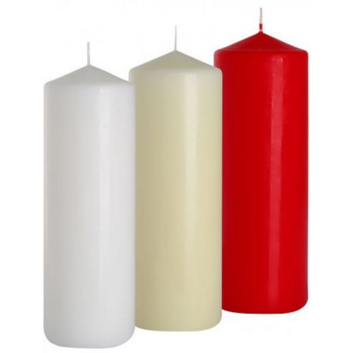 Свеча изготовлена из высококачественного парафина и представлена в нескольких цветовых решениях. Свеча выполнена в форме цилиндра, благодаря этому очень устойчива без подсвечников. Самое элементарное применение свечей это освещение в темное время суток, также свечи применяют для создания романтической обстановки, подогрева аромаламп с маслами, гадания и еще много различных применений. Также данный вид свечей применяют для декорирования помещений и что бы разнообразить интерьер. Ещё можно применять для создания свадебной атрибутики.