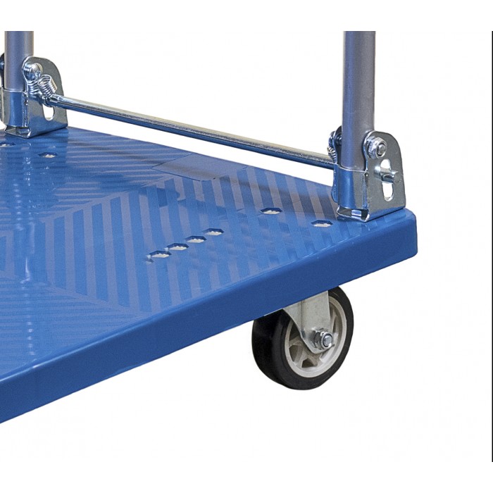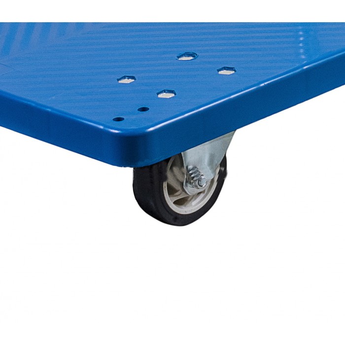 Платформенная тележка этой серии имеют равные стальной металлической трубы покрытую цинком что предотвращает коррозию. Сверху на раму установлена площадка из полипропилена она полностью прячет под собой раму имеет специальный анти скользящее покрытие, что позволяет надежно фиксировать груз при перевозке. Благодаря такому покрытию тележку очень легко мыть и она не подвержена коррозии, также её можно использовать для пищевых продуктов. Колёса изготовлены из полиуретана что позволяет обеспечить максимально плавный ход и отсутствие следов на поверхности. Рукоять тележки также выполнена из цельной трубы с усилением по центру и установлена на специальный шарнир что позволяет складывать её во время простоя.